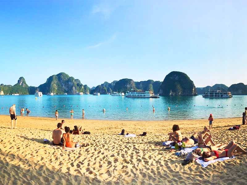 15h30-16h30: From the top of Titov island, you can enjoy the panoramic view of Ha Long Bay with thousands of limestone. Swimming at Titov beach. Or enjoy the Jacuzzi on boat.