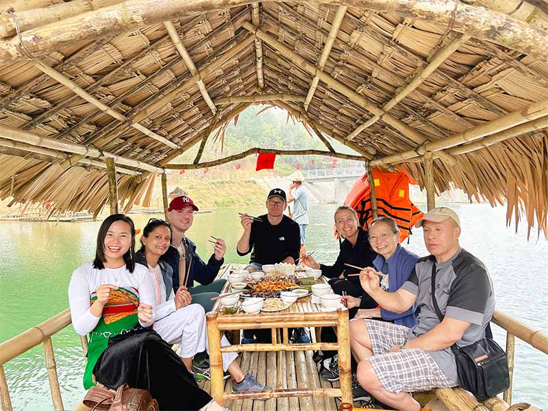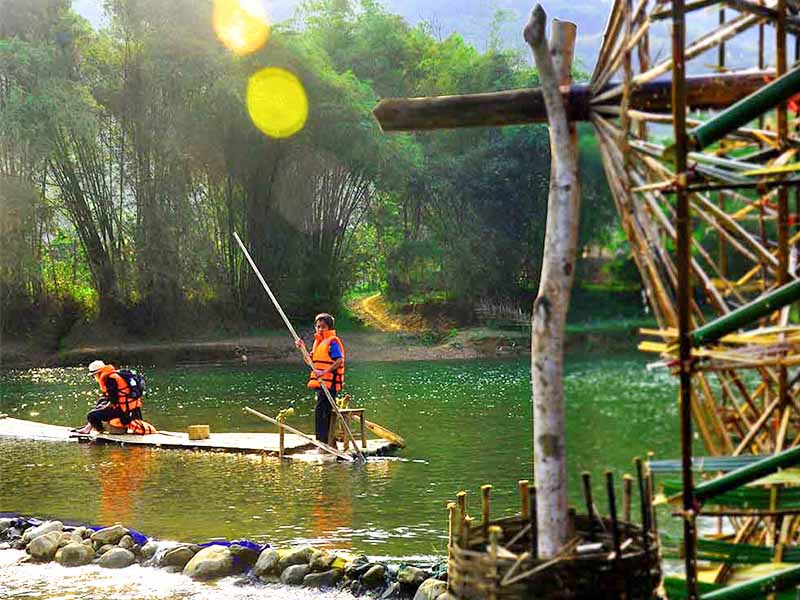 10h45: Arrive at Cham Stream for a bamboo rafting adventure and enjoy a delicious lunch on the boat. Relax as you float through lush forests, rice