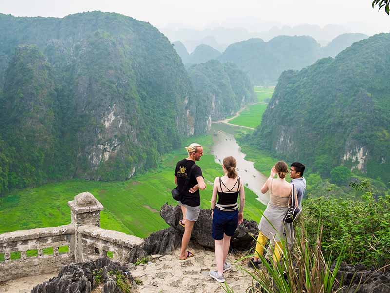 09h30: Get back to Car then leave for Mua Cave (Dancing Cave). Walk up almost 500 steps, you can reach the top of Lying Dragon Mountain & have an amazing panoramic view of Tam Coc from